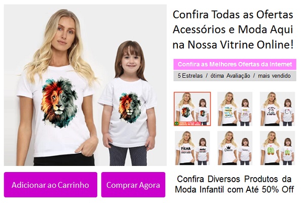 Camisetas de Malha Feminina Adulto + Camiseta Infantil Tal Mãe Tal Filha.